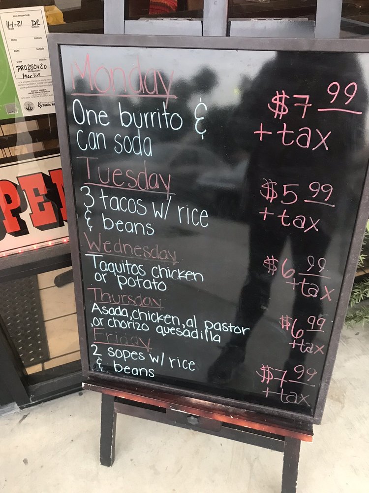 Includes, beans, meat, lettuce, cheese, onions, jalapeños, avocado, and tomato